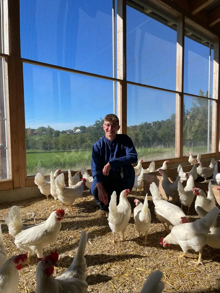 In diesem Austausch lernt er wie die anderen Bereiche Aufzucht, Mast, Brut und Schlachtung funktionieren. Für Tobias Meierhofer sind diese Praxiserfahrungen in verschiedenen Betriebssparten sehr wertvoll. Bei einem Aufzuchtbetrieb konnte er bereits reinschauen. «Ich war dabei, als die Junghennen ausgestallt und auf Legehennenbetrieben wieder eingestallt wurden – lerntechnisch war das ein super Zeitpunkt für den Austausch und bedeutete für meine Ausbildung einen Mehrwert», erklärt Tobias Meierhofer.
