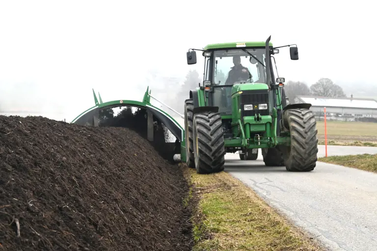 «Das Wenden ist die wichtigste Arbeit beim Kompostieren», erklärt der Landwirt. «Dabei kommt Sauerstoff in den Kompost, welchen die Mikroorganismen zum Arbeiten brauchen.»