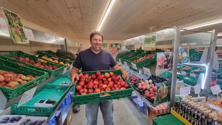 Er setzt seine Ernte per Direktvermarktung ab, kann allerdings überschüssige Mengen auch an den Grosshändler Petracca aus Pieterlen liefern. So findet die Pfirsich- und Nektarinen-Ernte stets einen Abnehmer.