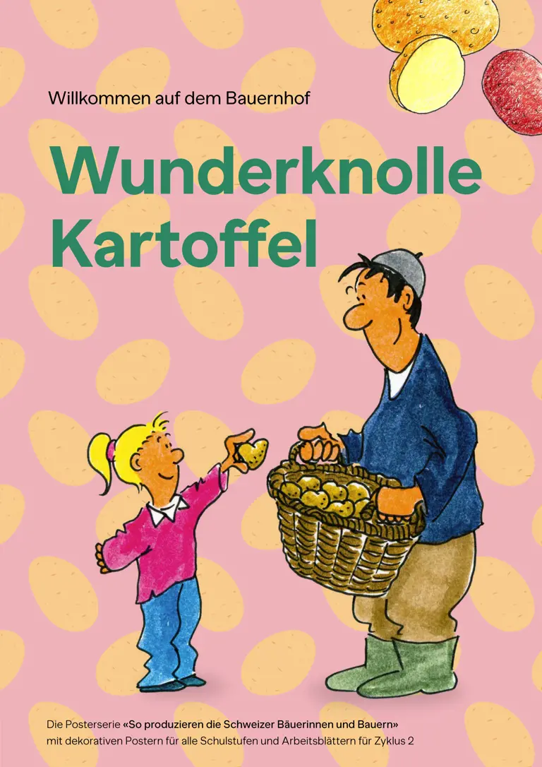 Der LID hat die beiden Schulposter «Kartoffelland Schweiz» und «Bienenland Schweiz» komplett überarbeitet. Die als Cartoon gezeichnete Posterseite im A1-Format erfuhr dabei nur minime Anpassungen und behält ihren Wimmelbild-Charakter. Währenddessen kommen die Aufgaben und Arbeitsblätter für Schulkinder im Zyklus 2 auf der Rückseite im neuen Look daher. So sind sie für die Schulen besser zum Ausdrucken geeignet und auch die Inhalte wurden stärker auf die Bedürfnisse der Schulen ausgerichtet. Nebst sprachlichen Vereinfachungen bestehender Informations- und Aufgabenseiten, wird die im Jahr 2025 beim Poster «Hühner, Hähne und Küken» entwickelte Experimentierseite fester Bestandteil der Posterserie.